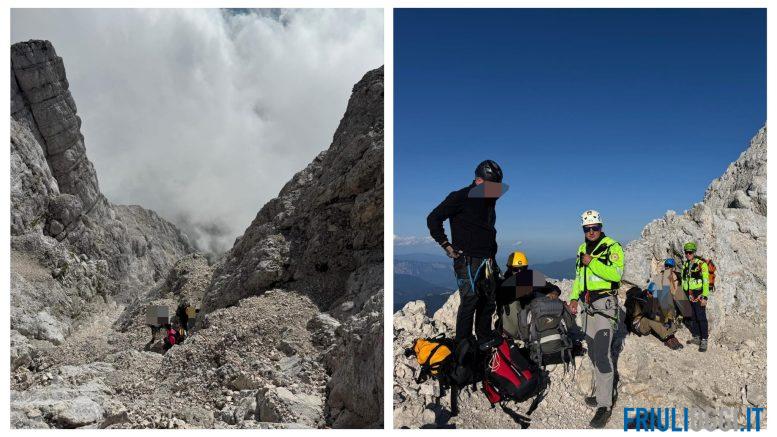 È terminata attorno alle 18 una delicata operazione di soccorso in alta quota che ha visto coinvolti quattro escursionisti udinesi, rimasti bloccati lungo il canalone Findenegg, sul versante sud-ovest del Montasio, a circa 2.600 metri di altitudine.