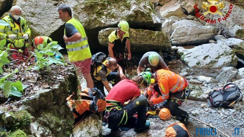Alle ore 17 e 40 di oggi, 17 luglio 2022, i vigili del fuoco di Udine sono intervenuti con la squadra del distaccamento di Tolmezzo e personale Speleo Alpino Fluviale del comando per soccorrere un uomo che durante una passeggiata è caduto infortunandosi nei pressi della forra della Vinadia Cascata Picchions nel comune di Lauco.
