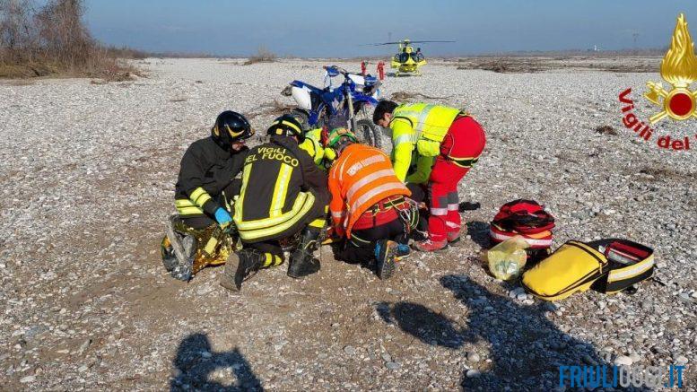 Un giovane è stato soccorso questa mattina per le ferite che ha riportato a seguito di una caduta con una moto da cross sul greto del fiume Tagliamento nel comune di San Martino al Tagliamento.