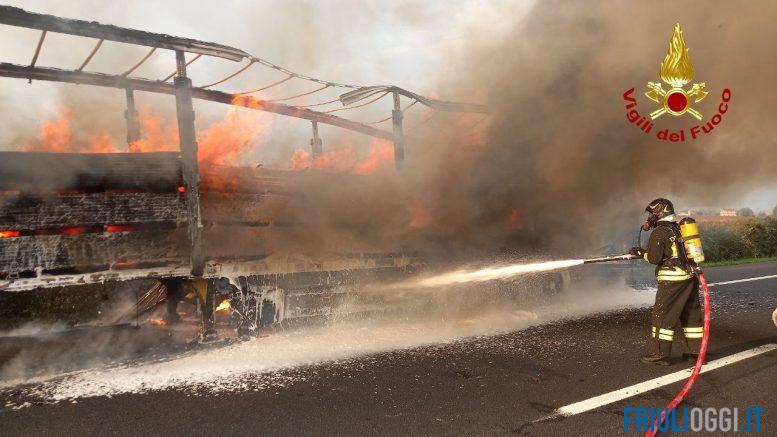 Autostrada A4 chiusa nel tratto tra San Stino di Livenza e San Doná in direzione Venezia per consentire le operazioni di spegnimento dell’incendio che si è sviluppato da un autoarticolato. L’episodio è avvenuto al chilometro 429+500 in territorio di Cessalto. Poco dopo le 15.30 di oggi lunedì 28 ottobre un mezzo pesante – per cause in corso di accertamento – ha cominciato a prendere fuoco.