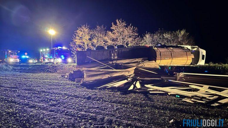 Il camion si è ribaltato tra Dignano e San Odorico di Flaibano.