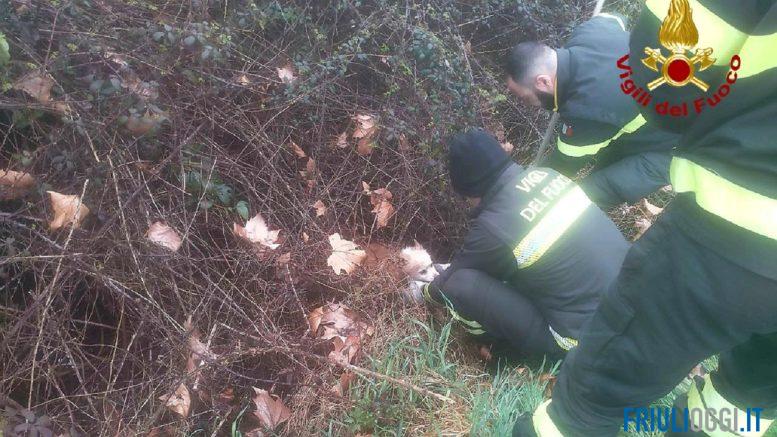 Il cane era rimasto intrappolato tra i rovi in via Agnesina a Porcia.