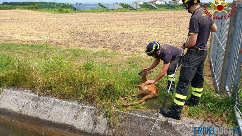 Un capriolo è stato salvato oggi pomeriggio dai Vigili del Fuoco del distaccamento di Maniago, grazie alla tempestiva segnalazione di un passante. L’animale era finito all’interno di un canale d’acqua nella Frazione Dandolo e rischiava l’ipotermia.