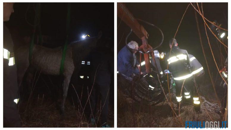 Sul posto sono intervenuti i vigili del fuoco volontari di San Daniele faticato non poco per mettere in salvo l’animale. Con l’aiuto di un privato, Adriano Gastandello, che ha utilizzato un trattore con una forca per il letame, il cavallo è stato delicatamente alzato e riportato sulla riva.