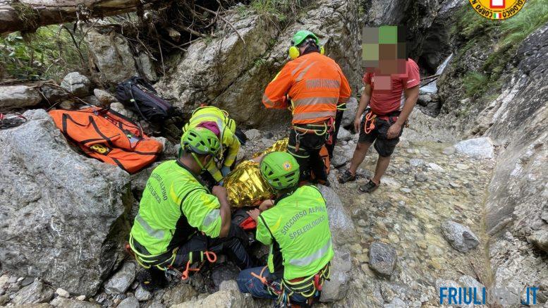 Nella forra della Tolina a Forni di Sopra un uomo che stava scendendo assieme ad altri lungo la forra è stato colpito dal rimbalzo di una corda in tensione procurandosi un forte trauma toracico e la rottura delle costole.