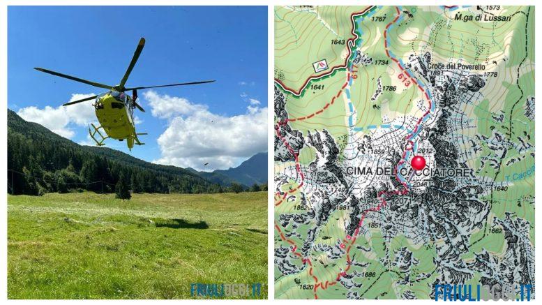 Intervento del soccorso alpino di Cave del Predil nel primo pomeriggio di oggi nel Tarvisiano, al di sopra dei 2000 metri su Cima del Cacciatore dove un turista veneto è stato colpito ad una gamba da alcuni sassi caduti dall’alto e ha riportato una sospetta frattura.