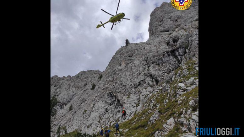 Un uomo del 34 anni di Gorizia è stato colpito da un sasso caduto dalla parete mentre si apprestava a scalarla assieme a due compagni di cordata.