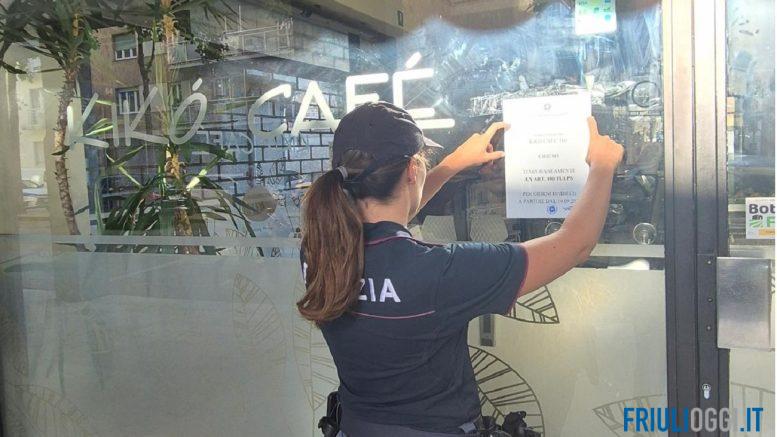 Fra i locali controllati nelle varie operazioni, rientra il bar “Kikò Cafè”, più volte segnalato dai residenti della zona come “piazza di spaccio”. Le verifiche fatte nell’ultimo mesi di controlli serrati hanno dato riscontro alle lamentele della cittadinanza: il pubblico esercizio è risultato abituale ritrovo di persone con precedenti penali e di polizia e, in diverse occasioni, sono stati rinvenuti quantitativi di hashish e cocaina, occultati fra le stesse saracinesche del bar, oltre che nei tombini e cespugli vicino allo stesso. Queste le ragioni che, nel pomeriggio di venerdì 19, hanno portato il Questore di Udine a disporre la chiusura per 10 giorni del pubblico esercizio.