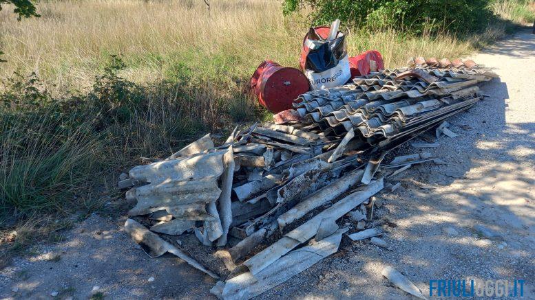 Una discarica a cielo aperto di eternit. E’ questo il brutto spettacolo che si presenta lungo la strada sterrata nei pressi della località Cascina Rinaldi. al confine tra i comuni di Corno di Rosazzo e San Giovanni al Natisone.
