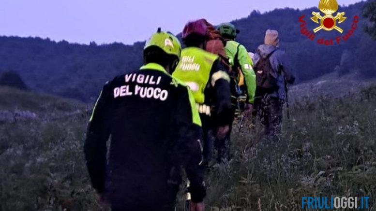 L’elicottero della Protezione Civile ha portato i soccorritori di Maniago in quota, sbarcandoli presso la Malga e questi sono riusciti a individuare i due escursionisti i quali hanno rifiutato di salire a bordo del velivolo riferendo di voler rientrare a piedi. I soccorritori hanno allora inviato il fuoristrada lungo la strada bianca che conduce alla malga per andare loro incontro. Sul posto anche la squadra dei Vigili del fuoco del distaccamento di Spilimbergo (PN) e la squadra SAF (Speleo Alpino Fluviale) della sede centrale di Pordenoneè e l’elicottero Drago 149 dei Vigili del Fuoco di Venezia.