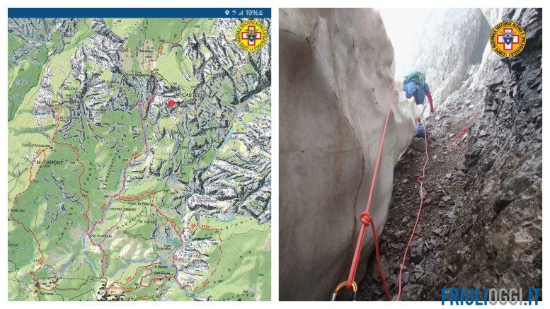 Escursionisti bloccati dalla neve a 1800 metri: salvati dal Soccorso alpino. Tra le 17 e le 19 circa di ieri, domenica 16 giugno, la stazione di Forni Avoltri del Soccorso Alpino è intervenuta con quattro soccorritori assieme ad altri due uomini della Guardia di Finanza e all’elisoccorso regionale, tutti attivati dalla Sores dopo chiamata pervenuta al Nue112, per soccorrere quattro escursionisti, tre donne e un uomo, di età compresa tra I 19 e i 57 anni, tutti friulani, rimasti bloccati alla fine della discesa lungo il sentiero Spinotti, proprio alla scaletta terminale a quota 1800 circa. Il gruppo non se la sentiva di superare il nevaio sottostante la scaletta, piuttosto ripido, temendo di scivolare sulle rocce e sulla pietraia sottostanti.
