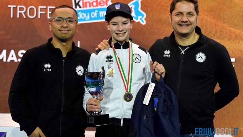 Dopo il doppio bronzo di Edoardo Di Benedetto e Giovanni Peres nel fioretto Giovanissimi nella prima giornata di gare, ieri è arrivato un altro terzo posto per l’Associazione Sportiva Udinese al 59° GPG “Renzo Nostini” 2023 – Kinder Joy of Moving, i campionati italiani di scherma per le categorie Under 14. Marco Bertossi è salito sul terzo gradino del podio nel fioretto Allievi, atleti nati nel 2009.