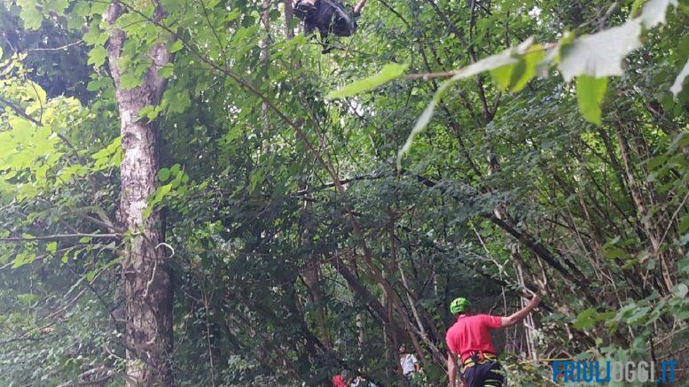 Il giovane è rimasto bloccato con il parapendio su un albero a 5 metri da terra.