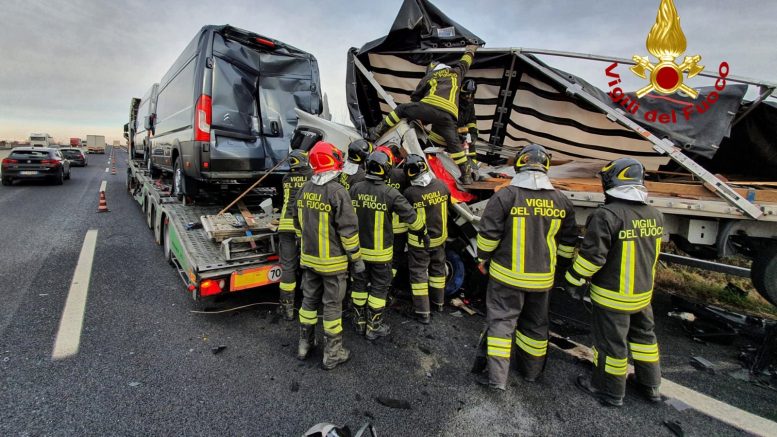 Un furgone è rimastro incastrato tra il guardrail laterale e una bisarca che lo precedeva. Ferito il conducente del veicolo. Secondo una prima ricostruzione, sarebbe stato il furgone a tamponare il mezzo pesante che lo precedeva. Il conducente era rimasto incastrato nell’abitacolo e per estrarlo sono dovuti intervenire i vigili del fuoco di San Donà, Motta di Livenza e Venezia, che lo hanno prontamente estratto, mettendo poi l’area in sicurezza. L’uomo è stato preso in cura e stabilizzato dal personale del Suem, poi trasferito in ospedale.