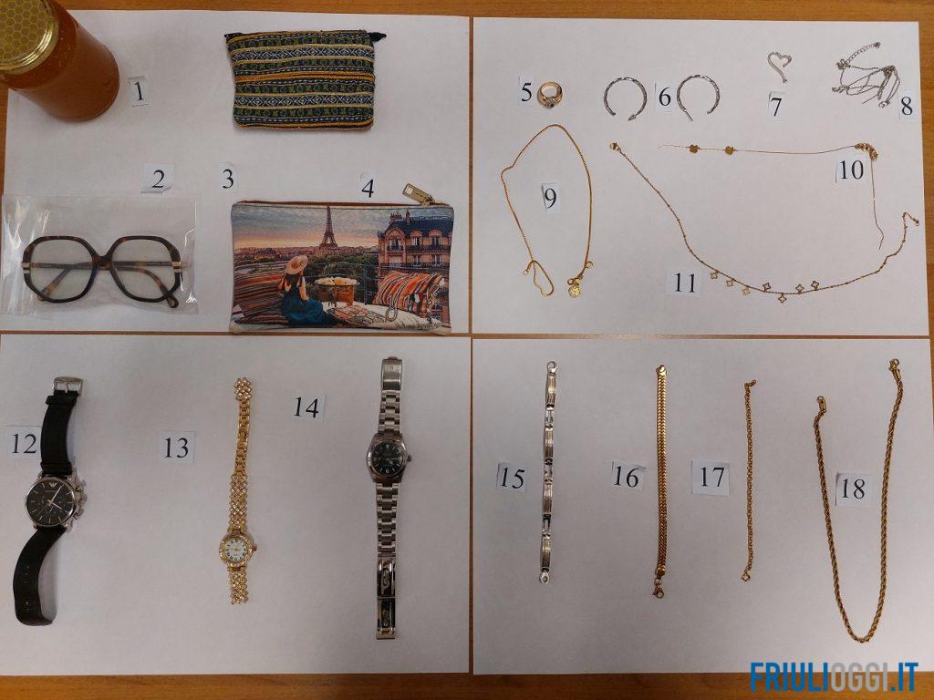 Nel corso della notte di sabato, i Carabinieri di Aviano, con il supporto di altri reparti dell’Arma, hanno eseguito perquisizioni presso le abitazioni dei sospettati. Durante le operazioni sono stati rinvenuti gioielli in oro e orologi di sospetta provenienza, potenzialmente collegabili ai recenti furti. Le immagini degli oggetti sono state messe a disposizione della cittadinanza per l’eventuale riconoscimento da parte dei legittimi proprietari. Chiunque riconosca la propria refurtiva è invitato a contattare la Stazione Carabinieri di Aviano al numero 0434 660157, tutti i giorni dalle 08:30 alle 13:00.