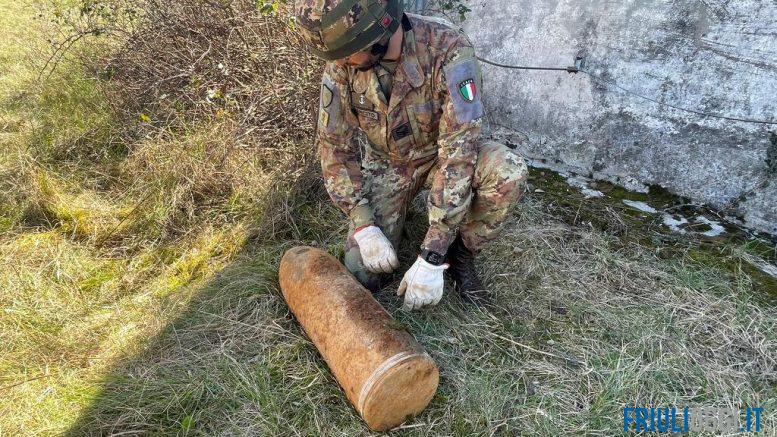 La granata, calibro 210mm di fabbricazione italiana e risalente alla Prima Guerra Mondiale, è stata portata sul greto del torrente Torre a San Vito al Torre e quindi fatta brillare in sicurezza dai militari.