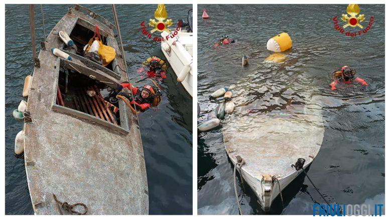 Giunti sul posto i vigili del fuoco si sono immersi e utilizzando gli appositi palloni di sollevamento hanno riportato a galla il natante, di circa 8 metri, che successivamente è stato caricato su un camion. Durante le fasi del recupero, resosi necessario per evitare che il carburante e gli olii presenti nel propulsore dell’imbarcazione inquinassero l’ambiente marino. Presente anche personale della Capitaneria di Porto di Trieste.