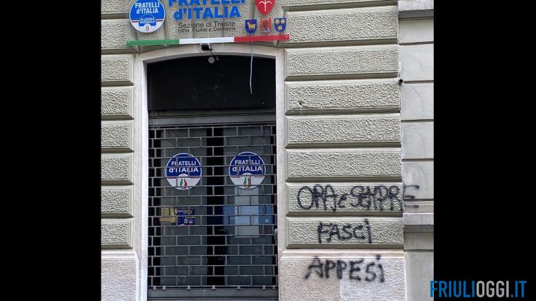 A poche ore dalla vittoria alle elezioni politiche di Fratelli D’Italia la sede del partito di Trieste è stata imbrattata con delle scritte offensive.