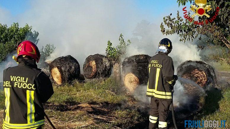 Il primo intervento che ha impegnato due autopompe, un mezzo fuoristrada con rimorchio antincendio del distaccamento di Codroipo e l’autobotte giunta dalla sede centrale di Udine è iniziato qualche minuto prima delle 6 di questa mattina e ha interessato 17 rotoballe depositate in un campo agricolo adiacente alla zona golenale del fiume Tagliamento. I Vigili del fuoco sono riusciti ad evitare la propagazione delle fiamme alla vegetazione circostante. Per lo spegnimento e per la successiva bonifica le squadre VV.F. hanno operato per tutta la mattina.