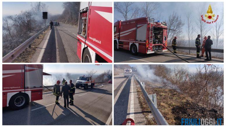 Per fronteggiare l’incendio che dalla strada stava avanzando verso monte i vigili del fuoco di Pordenone hanno impegnato un autopompa, un autobotte, un mezzo fuoristrada con modulo per l’antincendio boschivo, un DOS (Direttore Operazioni di Spegnimento) e l’elicottero giunto dal Reparto Volo dei Vigili del fuoco di Venezia. Oltre ai Vigili del fuoco, per spegnere l’incendio è giunto sul posto anche personale del Corpo Forestale Regionale del Friuli Venezia Giulia che ha schierato anche un DOS e volontari AIB (antincendio boschivo) della Protezione Civile. Presenti inoltre i anche carabinieri. L’intervento dei Vigili del fuoco è terminato intorno alle 13.
