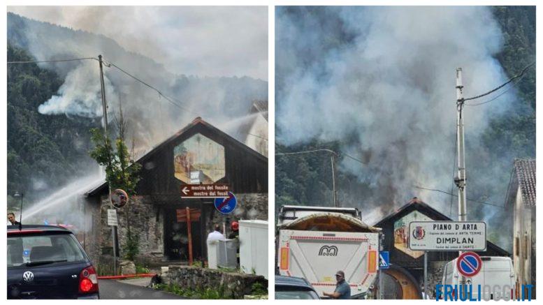 Incendio nella tarda mattinata di oggi ad Arta Terme. Le fiamme hanno interessato un edificio che si affaccia sulla ex provinciale 111 a Pian d’Arta.