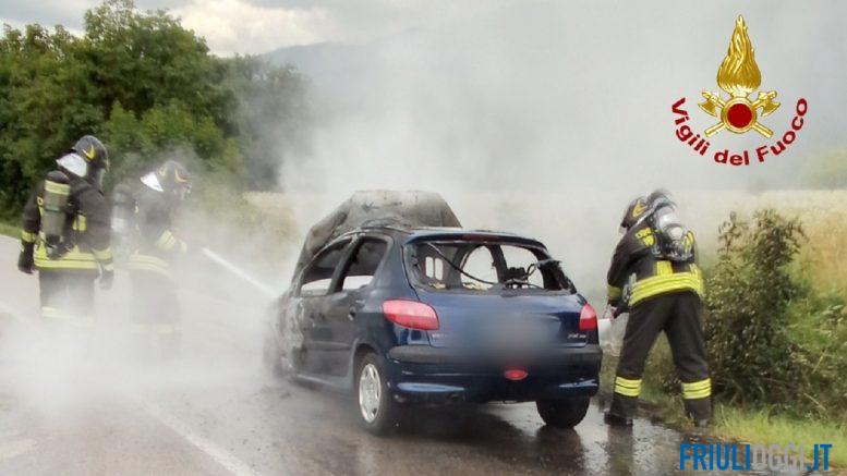 Auto in fiamme questo pomeriggio sulla Strada Pedemontana Occidentale a Dardago di Budoia. Sul posto, intorno alle 14.20 è intervenuta la squadra dei Vigili del fuoco del distaccamento di Sacile.