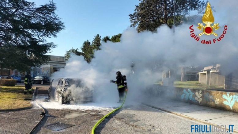 I vigili del fuoco giunti sul posto, utilizzando anche la schiuma antincendio, ha provveduto ad estinguere le fiamme evitando la loro propagazione ad un albero sotto al quale si trovava la vettura incendiata.