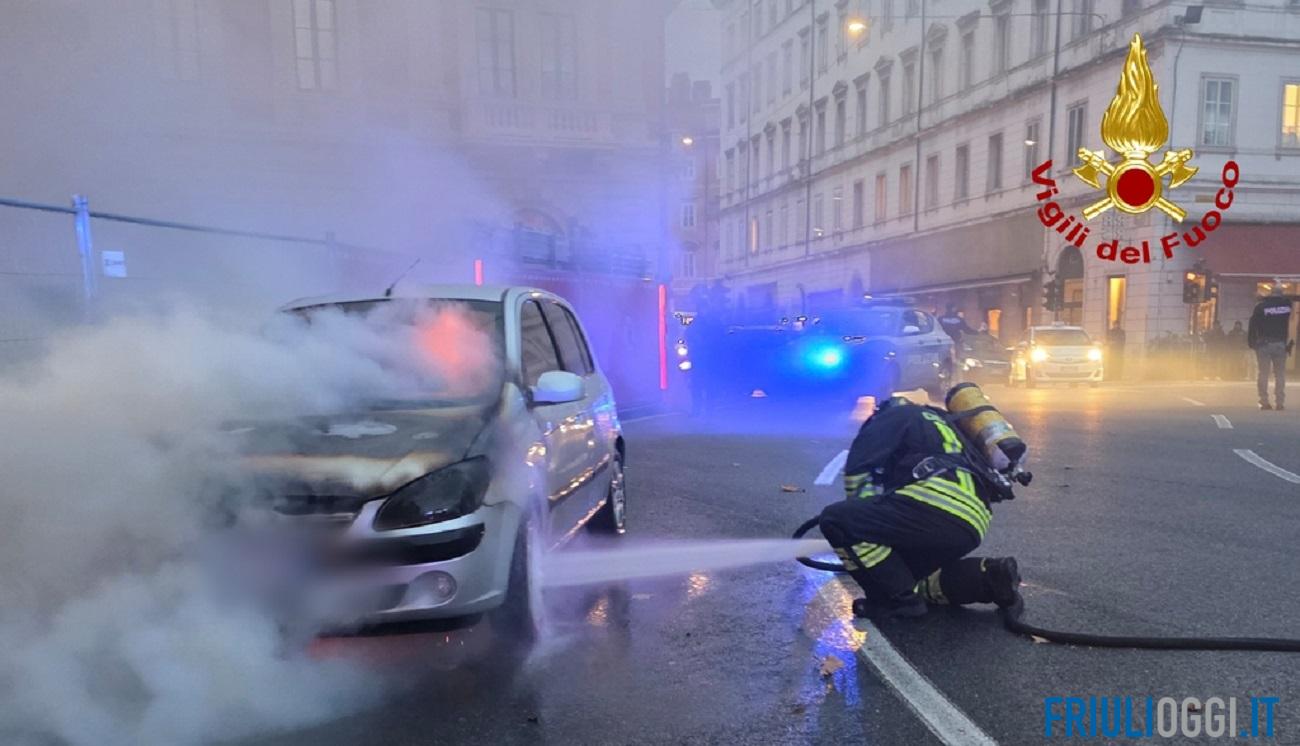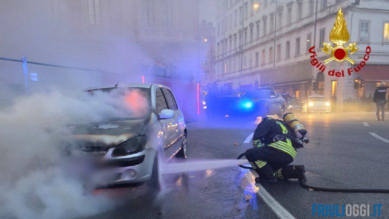 Auto in fiamme oggi pomeriggio a Trieste, in Piazza della Libertà, nei pressi della stazione centrale. L’allarme è scattato intorno alle ore 16.20, quando una pattuglia della Polizia di Stato, in transito nella zona, ha notato del fumo fuoriuscire da una vettura che si trovava proprio davanti al loro mezzo.