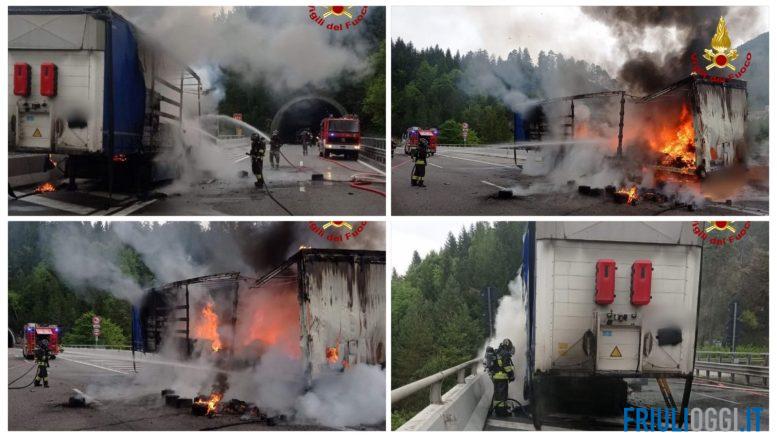 È stato grazie alla prontezza e al sangue freddo dell’autista del camion se questa mattina l’incendio sull’autostrada A23, nel tratto tra il confine di Stato e Tarvisio, non ha causato danni peggiori. Erano le 8.15 circa quando l’uomo, appena uscito da una galleria in direzione sud, ha notato del fumo fuoriuscire dal semirimorchio del suo autoarticolato.