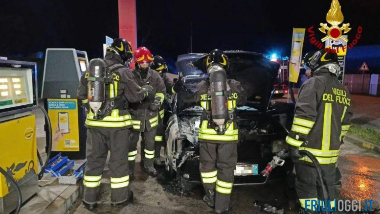 Poco prima della mezzanotte i Vigili del Fuoco di Pordenone sono intervenuti per l’incendio di un’autovettura ad Azzano Decimo che, per cause in corso di accertamento, si è accesa mentre si stava rifornendo a un distributore di carburante.