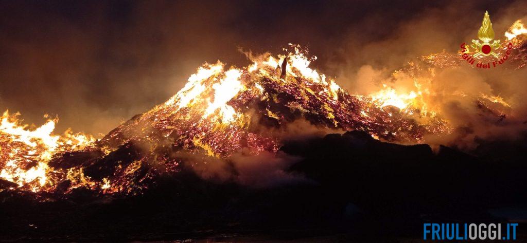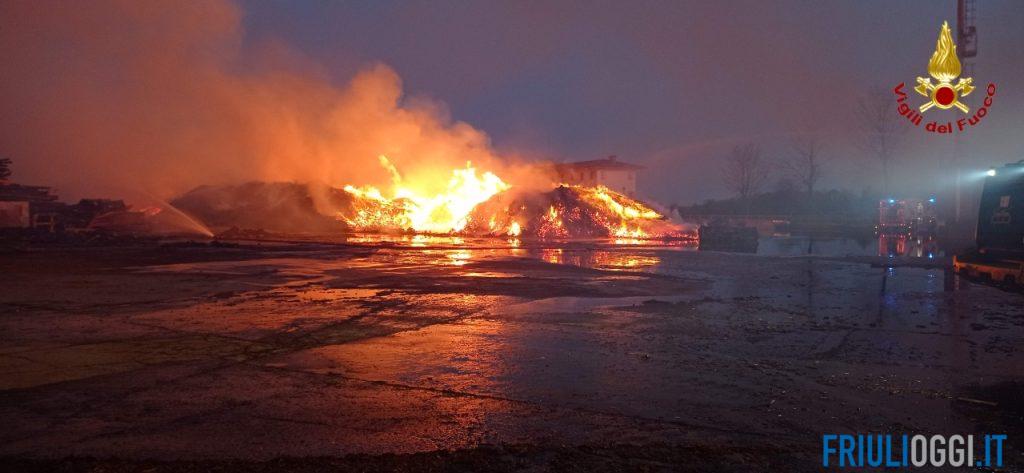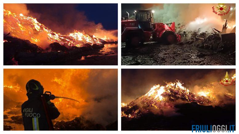 Nella notte hanno operato una trentina di vigili del fuoco con 3 squadre ordinarie, 2 pale gommate e 2 autobotti, giunte dalla sede centrale del comando friulano e dai distaccamenti di Codroipo e San Vito al Tagliamento. Inoltre, nella serata di ieri sono giunti sul luogo delle operazioni, due mezzi dai comandi di Pordenone e Trieste per portare ai colleghi, impegnati nel lungo lavoro di spegnimento e bonifica dell’incendio, bombole d’aria di ricambio per gli autorespiratori che i vigili del fuoco stanno utilizzando per operare in sicurezza.