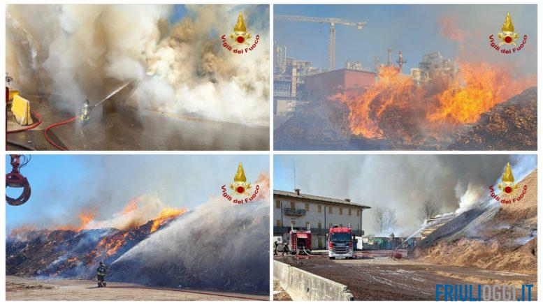 I Vigili del fuoco hanno messo in sicurezza una cabina del gas e gli impianti esterni dell’azienda e li stanno proteggendo dalle fiamme. Le operazioni di spegnimento del grosso cumulo di scarti lignei sono complicate dal vento che alimenta le fiamme.