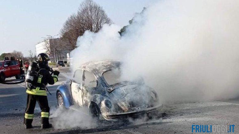 L’allarme è scattato poco dopo le 15 in viale Prampero, proprio di fronte allo stabilimento del gruppo Danieli. Per cause ancora in fase di accertamento, il veicolo ha iniziato a bruciare sprigionando in pochi minuti una densa colonna di fumo nero visibile anche a distanza.