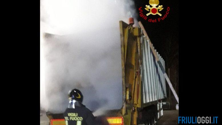Incendio di un camion dei rifiuti parcheggiato a Villa Santina.