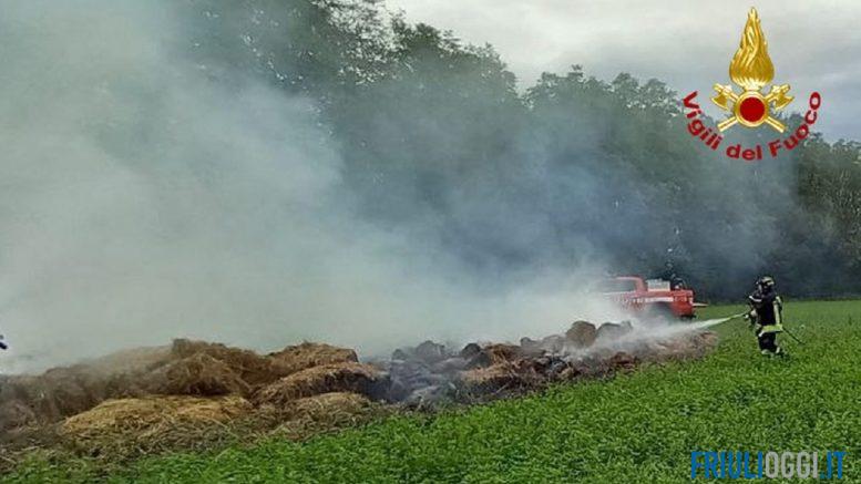 Giunti sul posto i vigili del fuoco hanno riscontrato che stavano andando a fuoco un centinaio di balle di fieno. Immediatamente le squadre hanno iniziato le operazioni di spegnimento riuscendo ad evitare la propagazione delle fiamme a tutto il campo e alle sterpaglie adiacenti. Ancora in fase di accertamento le cause dell’incendio.
