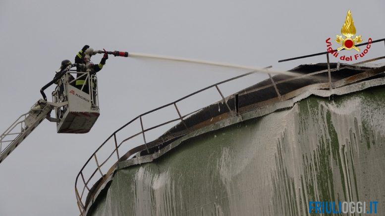 Giunti sul posto i vigili del fuoco hanno trovato la squadra antincendio aziendale che stava operando per contenere l’incendio e il personale sanitario che stava prestando le prime cure a due operai che avevano riportato ferite, fortunatamente non gravi. I Vigili del fuoco, utilizzando l’autoscala, hanno iniziato ad irrorare di schiuma la sommità del serbatoio spegnendo le fiamme. Successivamente i vigili del fuoco hanno provveduto alla completa messa in sicurezza del serbatoio riempiendolo di schiuma antincendio e verificando con la termocamera che le temperature, sia esterne che interne, della struttura fossero rientrate nei valori normali.