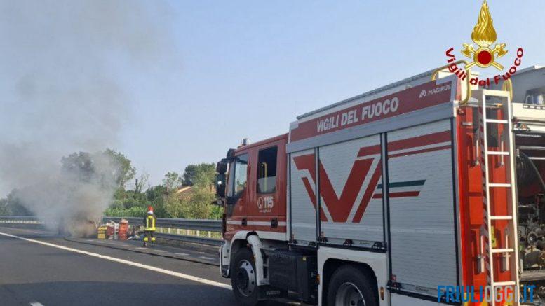 Furgone in fiamme questo pomeriggio intorno alle 18 sull’autostrada A28 all’altezza di Azzano Decimo, sulla corsia in direzione Portogruaro. Sul posto i Vigili del fuoco di Pordenone con una squadra supportata dall’autobotte giunte dal distaccamento di San Vito al Tagliamento.