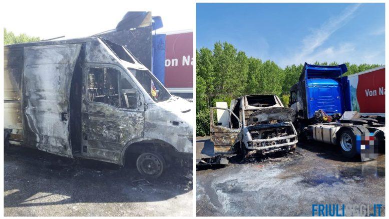 Autocarro in fiamme in una Ditta di noleggio veicoli a Rivignano, cause in via di accertamento.