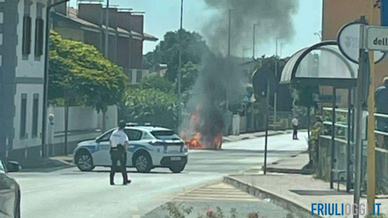 Auto in fiamme a Majano.