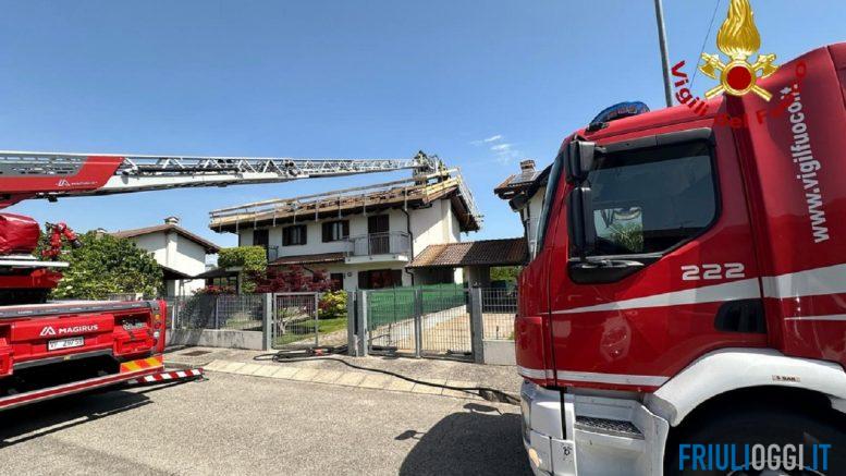 Incendio sul tetto di un’abitazione di Mortegliano.