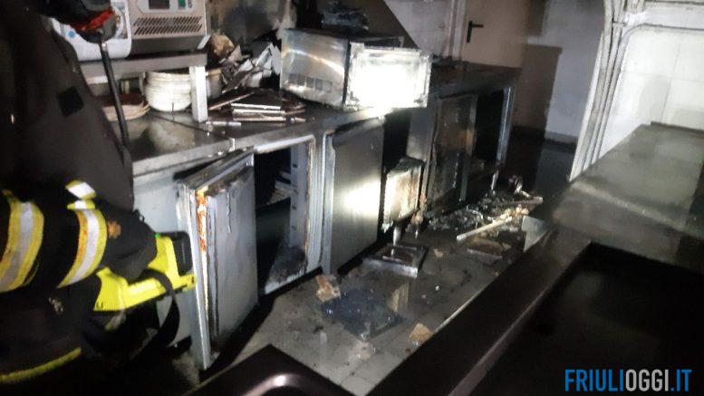 Incendio questa mattina nella pizzeria Il Melograno di Palmanova: le fiamme hanno interessato la cucina del locale.