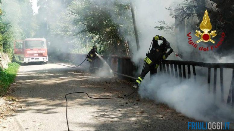 La squadra AntIncendio Boschivo dei vigili del fuoco di Pordenone è intervenuta verso mezzogiorno per un incendio di vegetazione estesosi ad alcuni metri della staccionata in via Terme Romane a Pordenone.