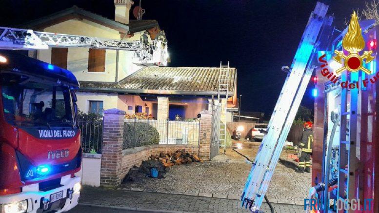 L’incendio in una casa di Fiume Veneto.