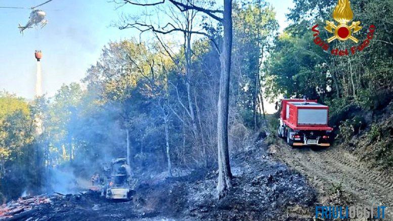 Incendio nel primo pomeriggio a Poianis, frazione del comune di Prepotto. Le fiamme hanno interessato prima una cippatrice alimentata a gasolio, e poi si sono propagate rapidamente ai campi circostanti e a una vicina zona boscata. L’allarme è scattato intorno alle ore 15.10, quando la sala operativa del comando dei Vigili del Fuoco di Udine è stata allertata per la presenza delle fiamme in un’area agricola.