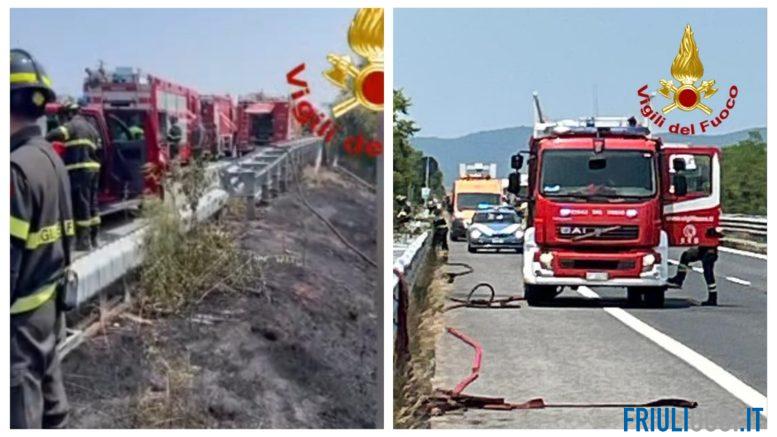 Dalle ore 11.20 circa i Vigili del fuoco di Trieste sono impegnati con la squadra del distaccamento di Opicina, una squadra l’autobotte e il funzionario di guardia della sede centrale del comando giuliano e con il supporto di un’ulteriore squadra e un autobotte, giunte dal distaccamento di Monfalcone, per un incendio di sterpaglie, con più focolai, a bordo strada che tendono a propagarsi verso l’interno della vegetazione carsica, sul Raccordo Autostradale 13 dal km 1 + 700 fino allo svincolo di Sgonico in direzione Trieste.