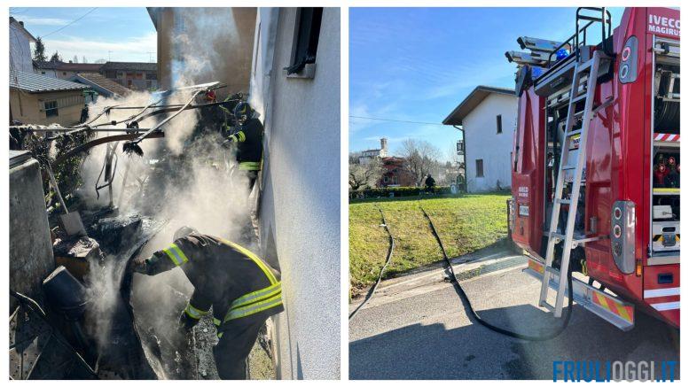 E’ accaduto poco dopo le 13 e sul posto sono subito intervenuti i vigili del Fuoco di San Daniele che in breve tempo hanno spento le fiamme evitando che si propagassero anche all’abitazione. Fortunatamente non si segnalano feriti, mentre i pompieri hanno poi proceduto alle operazioni di bonifica e messa in sicurezza.