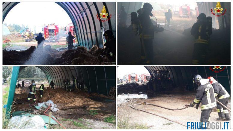Incendio questa mattina intorno alle 8 e 35 in un’azienda agricola di Coseano dove alcune rotoballe di fieno hanno preso fuoco all’interno di un capannone.
