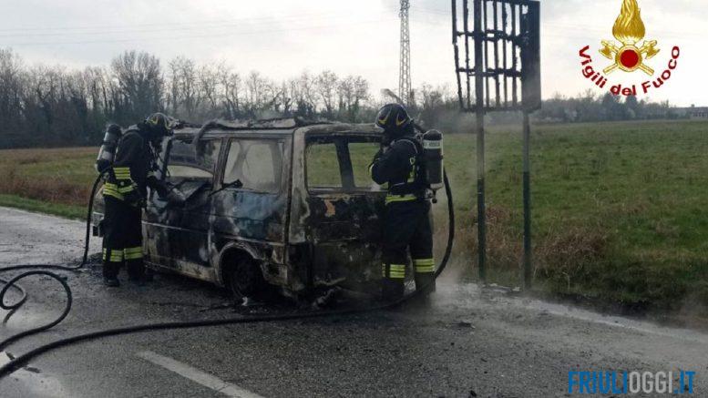 Incendio nel pomeriggio di oggi a San Giovanni al Natisone, dove un camper ha preso fuoco lungo la strada regionale 56, in via Trieste, all’altezza del locale Mastro Birraio.