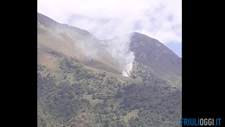 La colonna di fumo è ben visibile dalla valle sottostante e anche in questo caso sono stati allertati i vigili del fuoco.