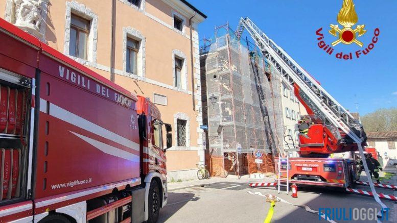 L’allarme è scattato poco dopo le 14.10, quando i Vigili del fuoco del comando di Gorizia sono intervenuti con una squadra, supportata da autobotte e autoscala, per domare le fiamme divampate sulla copertura in legno di un edificio di cinque piani fuori terra.